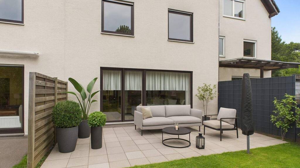 Bereits im Erdgeschoss überzeugt die Immobilie durch eine klare Aufteilung: Vom Flur aus gelangen Sie in alle Räume dieser Ebene. Ein Gäste-WC mit Tageslicht, eine großzügige Küche sowie der helle Wohn- und Essbereich mit direktem Zugang zur Terrasse, schaffen eine einladende Wohnatmosphäre. Von hier aus genießen Sie den Blick in den eigenen Garten, der sich ideal zum Entspannen oder für gesellige Stunden eignet.