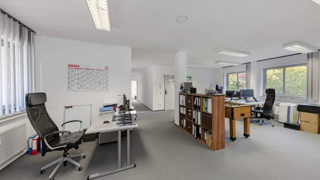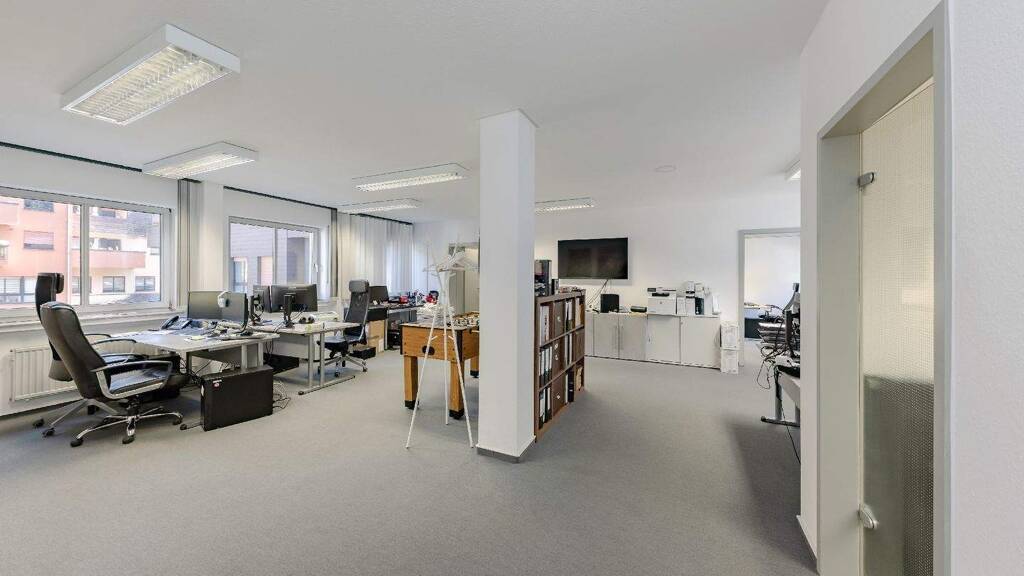 Gewerbefläche mit mehreren Büros für modernes Arbeiten. Offene Arbeitsbereiche, ruhige Rückzugszonen und top-ausgestattete Sozialräume schaffen Produktivität und Wohlbefinden. Helle, flexible Räume lassen sich je nach Teamgröße anpassen, so dass Einzel- und Mehrpersonenbüros gegeben sind.
