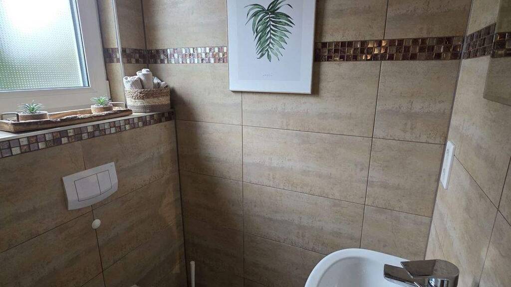 - Ein modernes Badezimmer, ausgestattet mit einer Badewanne und einer separaten Dusche