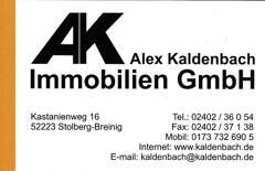 Wir, die Alex Kaldenbach Immobilien GmbH, in 52223 Stolberg - Breinig, Kastanienweg 16, arbeiten seit 1983 in der Immobilienbranche.