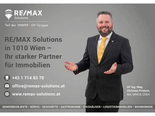 Bei RE/MAX Solutions sind Sie in den besten Händen: Unser starkes Team unterstützt Sie in all Ihren Immobilienangelegenheiten! Egal ob Kauf, Verkauf, Anmietung oder Vermietung. Umfassende Marktkenntnis und ein hohes Maß an Professionalität sind unser Rezept für Ihren (Verkaufs-)Erfolg.
