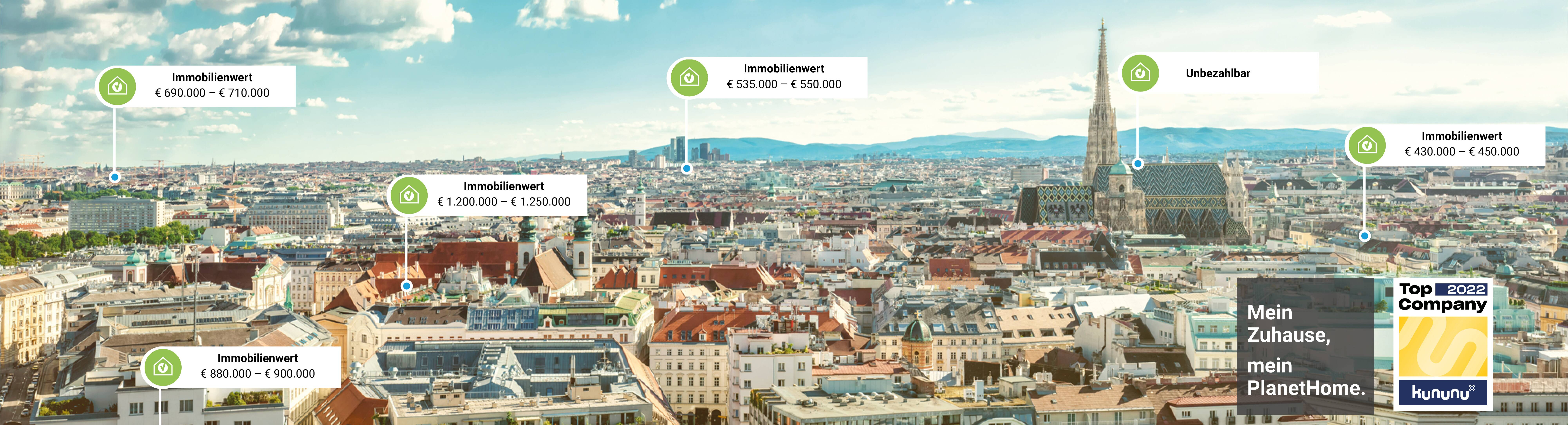 Die Stärke der PlanetHome liegt in der Partnerschaft mit den größten Finanzdienstleistungsunternehmen Österreichs. Ein effektives Vertriebsnetzwerk, wie es in dieser Form kein anderer Immobilienmakler in Österreich anbieten kann und eine umfangreiche Datenbank mit vorregistrierten Immobilien-Interessenten, sind die Grundlage unseres Erfolgs. Im Vordergrund steht die vollste Zufriedenheit sowohl auf Verkäufer- als auch Käuferseite, welche durch regelmäßig durchgeführte interne Qualitätskontrollen als auch zahlreiche Auszeichnungen bestätigt werden.
