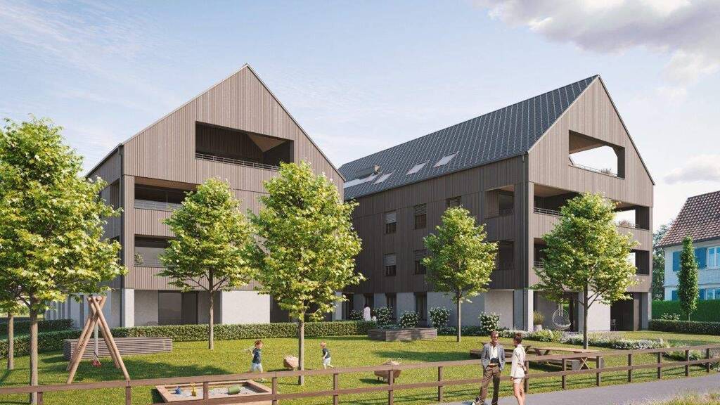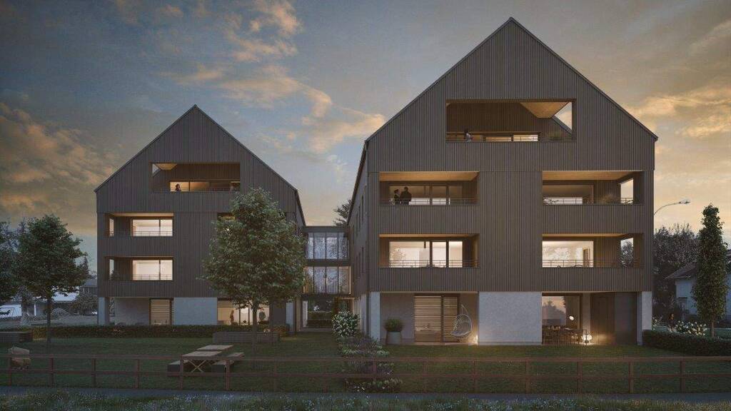 In idyllischer Lage entstehen 19 exklusive Eigentumswohnungen in zwei Baukörpern, die in Massiv- und Holzbauweise errichtet und durch ein gemeinsames Stiegenhaus verbunden werden.