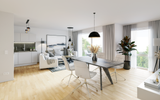 check Balkon, Tiefgarage, barrierefrei, Personenaufzug, offene Küche, Neubaustandard, Neubau, Bad mit Fenster, Erstbezug, Personenaufzug, Bad mit Dusche, Parkettboden, Fernwärme, Fußbodenheizung, Abstellraum, Kunststofffenster, KFW55