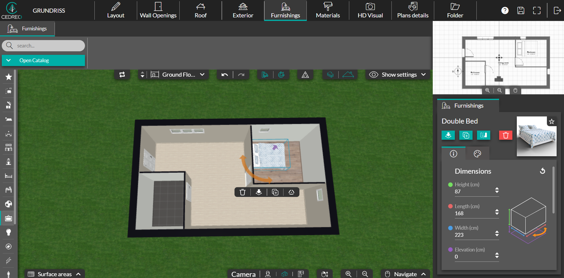Cedreo richtet sich vor allem an Profis. Es erlaubt die Erstellung kompletter Baupläne mit realistischen 3D-Darstellungen, inklusive Einrichtung und Maßangaben. Ideal für Immobilienmakler und Planer.