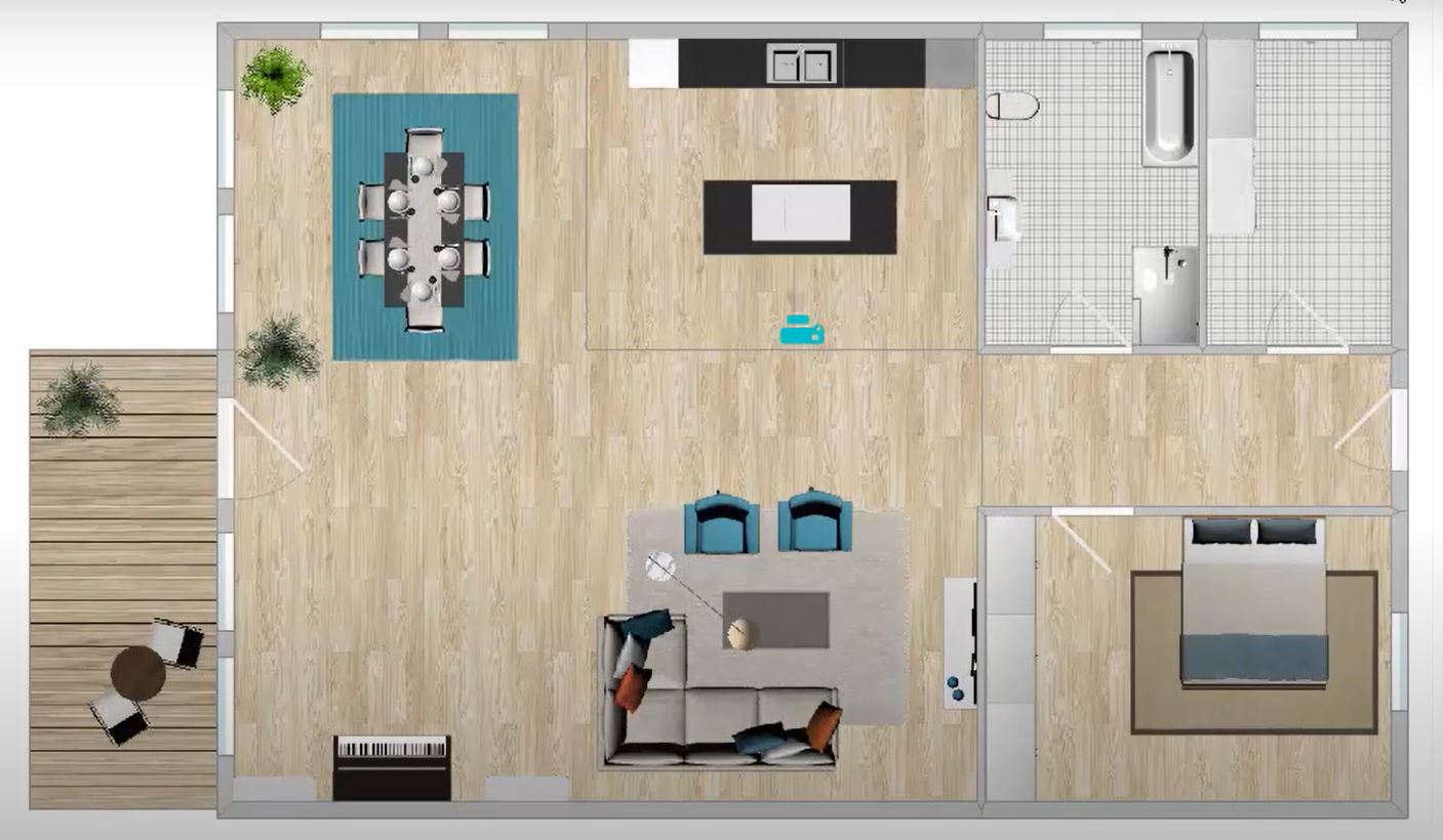 - Möblierung: Optional zur Veranschaulichung der Raumaufteilung