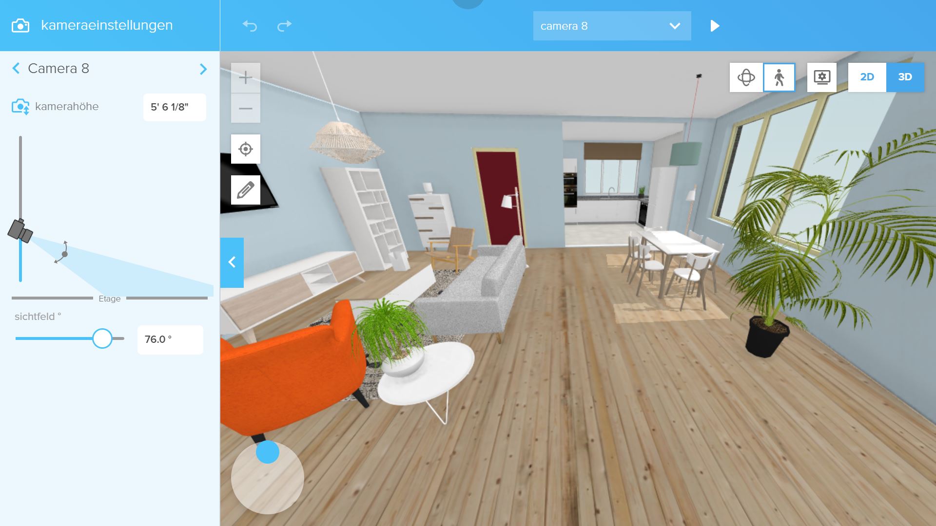 Nach der Anmeldung kann direkt mit dem Zeichnen losgelegt werden. Möbel, Türen und Fenster lassen sich als integrierte Vorlagen einfach per Drag & Drop platzieren. Highlight: „Snapshots“ ermöglichen 3D-Ansichten, fast wie ein virtueller Rundgang.