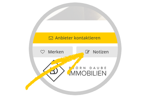 Notiere dir zu jeder Immobilie Fragen und wichtige Objektdetails wie die genaue Adresse oder den Besichtigungstermin. Klicke dazu einfach in einem Exposé auf „Notizen“. In deinen Notizen siehst du auch immer, wenn du eine Kontaktanfrage an einen Anbieter gesendet hast. Die Notizfunktion kannst du nur mit aktivem Suchassistenten nutzen.
