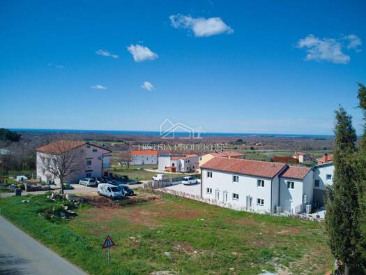 In erhöhter Lage mit herrlichem Meerblick, in der Nähe von Porec, befindet sich dieses Baugrundstück mit Baugenehmigung für ein Wohngebäude mit vier Wohnungen. Jede Wohnung bietet einen Teil des wund...