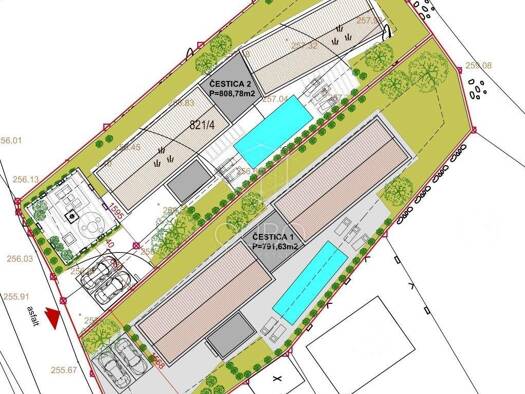 Wohn- und Gewerbegrundstücke zu verkaufen mit Projekt und gültiger Baugenehmigung für: - Bau eines Wohngebäudes, Gruppe 2b - Bau eines Gebäudes für gewerbliche Nutzung (Dienstleistung), Gruppe 2b tou...