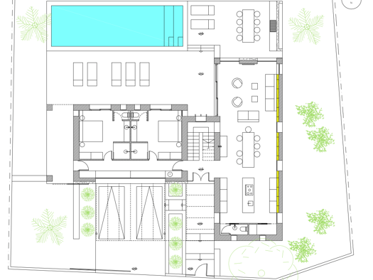 Das Grundstück verfügt über ein Basisprojekt zum Bau eines Einfamilienhauses mit fünf Schlafzimmer, fünf Badezimmer und Swimmingpool. Im Erdgeschoss sind, neben einem Wohn- und Essbereich mit offener...