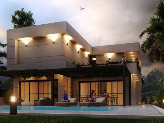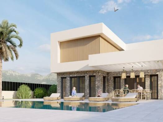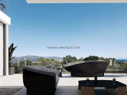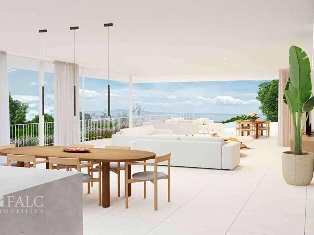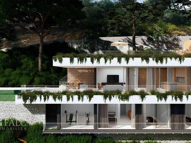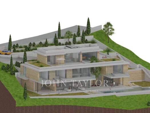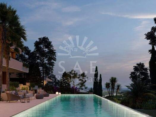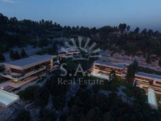 Vom ersten Stock dieses geplanten Hauses in einer beneidenswerten Hanglage genießen Sie einen atemberaubenden Fernblick von der unverbaubaren Grünzone bis zum Meer. Das etwa 7.500m2 große Grundstück ...