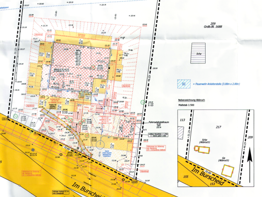 Aus den beiden vorstehend Parzellen wurden vor kurzem zwei Teilstücke herausgemessen, welche zusammen ca. 755 qm² ergeben. Dieser Vorgang befindet sich zurzeit noch im Lauf und wird in Kürze abgeschl...