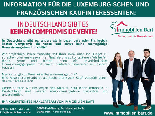 Das Baugrundstück ist voll erschlossen und sofort bebaubar. Flurstück: 220/31 Größe: 838m², bebaubar 637m² Die Ortsgemeinde Wellen / direkt am Grenzübergang Wellen / Grevenmacher (Luxemburg) gelegen,...