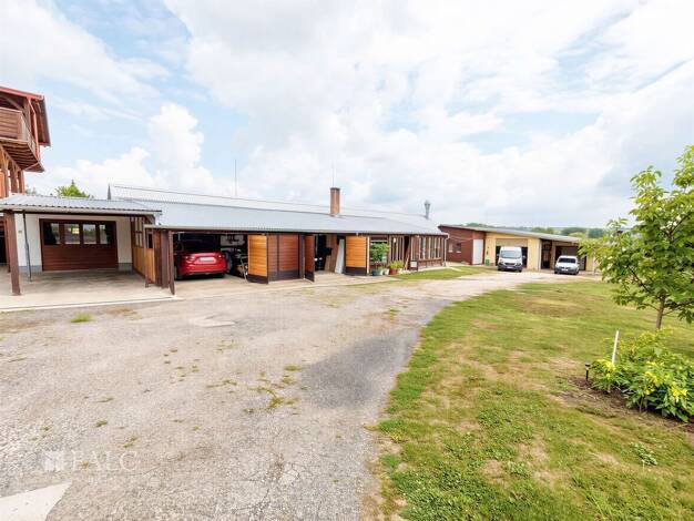 Es ist ein massiver Hallenbau mit Holzrahmen. Er wurde 2022 erbaut und besteht aus 12 Zentimeter dicken Sandwichpaneelen. Die elektrische Leistung beträgt 3x80 Ampere. Wasser ist auf das Grundstück g...