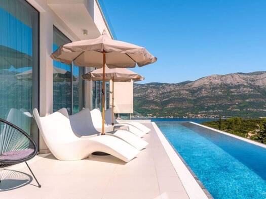 In ruhiger Lage nahe der Stadt Korcula befindet sich eine moderne Villa mit klaren Linien und einem raffinierten, minimalistischen Design im Innen- und Außenbereich. Das Anwesen bietet einen wundersc...