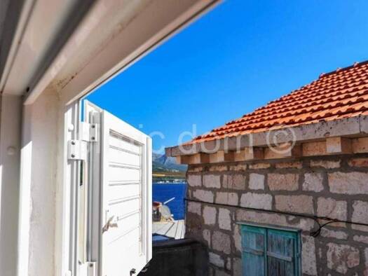 Dieses Haus am Meer in der kroatischen Stadt Korcula ist nur 5 Meter vom Strand entfernt. Dazwischen verläuft zwar eine Straße, aber dort herrscht fast kein Verkehr. Dies ist ein Doppelhaus mit 4 Eta...