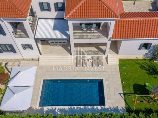 Zum Verkauf steht eine exklusive Luxusvilla in Sukosan, nur 200 m vom Meer und 2 km vom Ortszentrum entfernt. Auf einem Grundstück von 1.018 m² gelegen, vereint diese Villa _Eleganz, Komfort und mode...