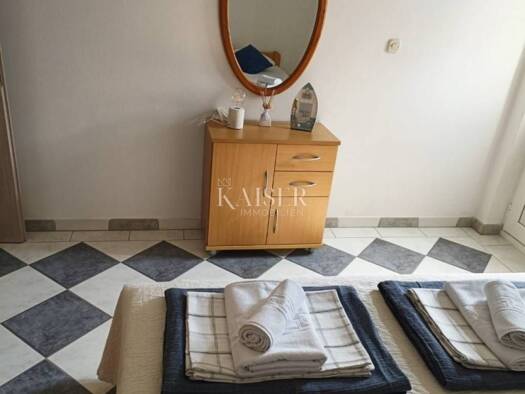 Nur 190 m vom Meer und 320 m vom Zentrum von Gornji Karin entfernt steht ein komplett möbliertes Haus mit zwei separaten Wohneinheiten und zusätzlichem Potenzial im Dachgeschoss zum Verkauf. Auf eine...