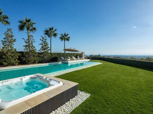 Kurzbeschreibung Die Häuser mit luxuriösem Design befinden sich in einer beliebten Lage in Benahavis, Málaga. Die freistehenden Häuser mit Panoramablick auf das Meer verfügen über private Pools. Obje...