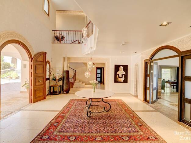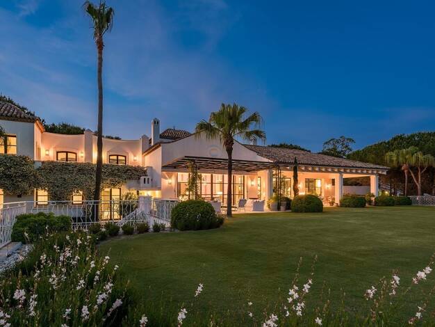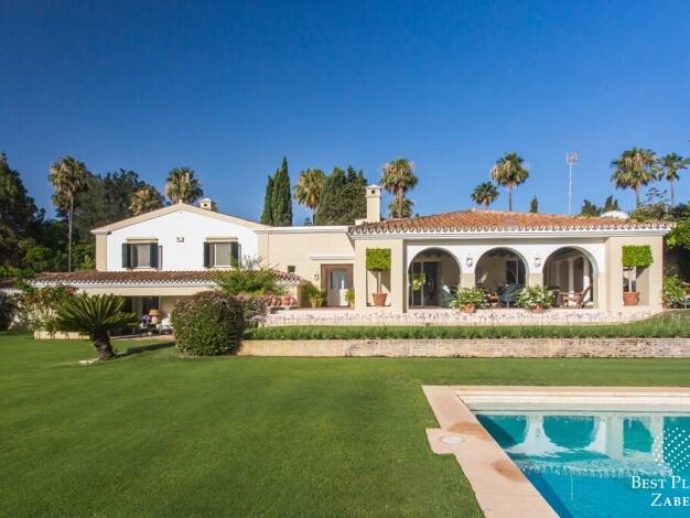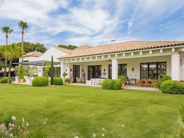 Klassische andalusische Architektur und ein herrlicher Blick auf das 9. Loch des Royal Sotogrande Golfplatzes sind die Hauptmerkmale dieser majestätischen Immobilie. Durch eine große Tür in einer Auß...