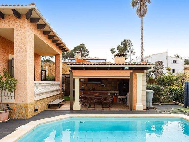 Charmantes Chalet im mallorquinischen Stil mit Pool und Dachterrasse in ruhiger Lage von Cales de Mallorca Dieses freistehende Chalet im typisch mallorquinischen Stil vereint mediterranen Charme, Pri...