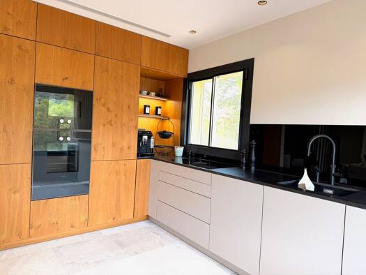 This contemporary villa follows the concept of "The New Mediterranean" - clean architecture combined with warm, natural materials. Set on a plot of 1,828 m² with a built area of approx. 645 m², the h...