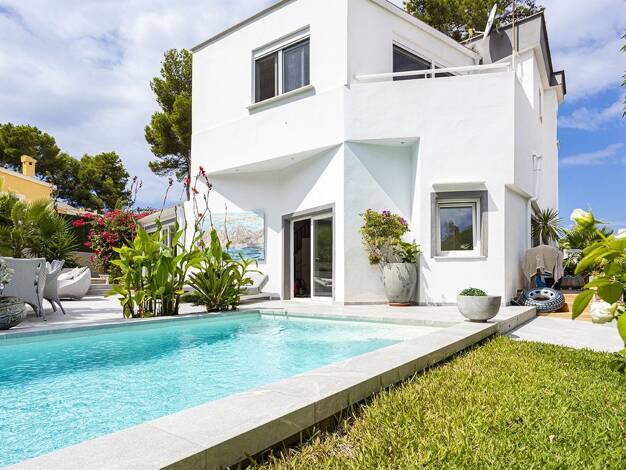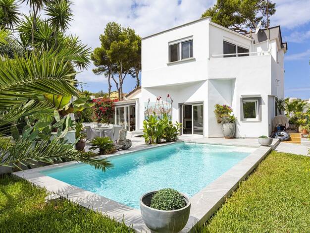 Mallorca - Immobilien: Diese Doppelhaushälfte verfügt über einen gepflegten Garten, einen Pool und mehrere Terrassen, die sich ideal zum Sonnenbaden eignen. Sie liegt in Santa Ponsa, einer ruhigen Ge...