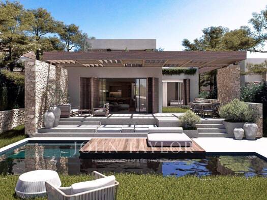 Das Haus bietet eine sorgfältige Innenausstattung in erdigen und natürlichen Farbtönen, die sich harmonisch in die mediterrane Umgebung einfügt. Verwendet werden Materialien mit geringer Umweltbelast...