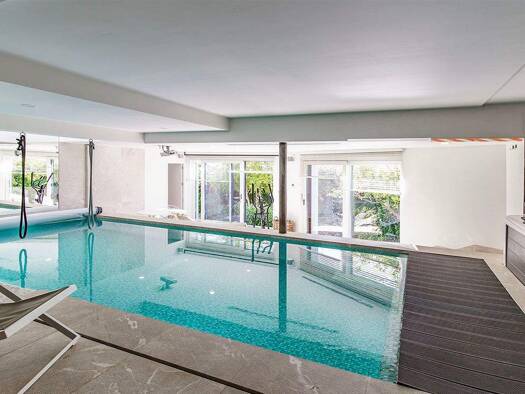 Diese außergewöhnliche Villa befindet sich auf einem Grundstück von 1.300 m2 und ist über 3 Etagen verteilt, die durch einen Aufzug verbunden sind: die obere Etage besteht aus einem offenen und helle...