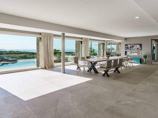 Immobilien Mallorca: Die moderne Neubauvilla in 1. Meereslinie mit traumhaftem Panorama- Meerblick wurde im Jahr 2022 fertiggestellt. Sie befindet sich in spektakulärer Lage der vornehmen Villenwohng...