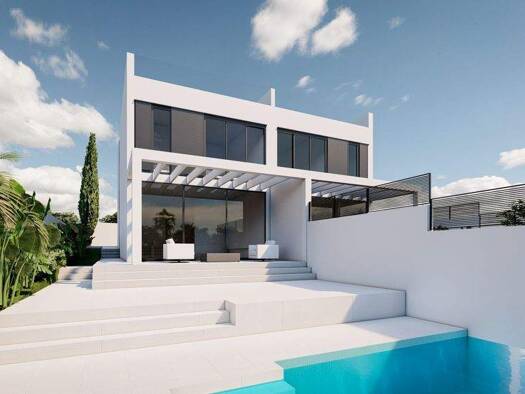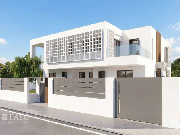 In Bahía Blava entstehen zwei exklusive Doppelhaushälften in moderner Architektur auf jeweils ca. 385 m² großen Grundstücken. Durch die Hanglage genießen beide Häuser bereits vom Erdgeschoss aus Teil...