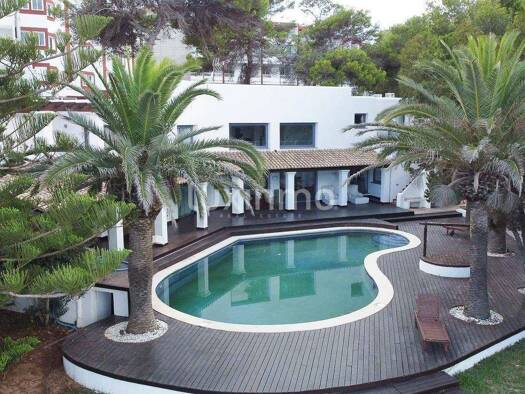 Esta preciosa villa de estilo Bauhaus con espectaculares vistas panorámicas al mar y a Formentera está situada en una de las parcelas más bonitas de la privilegiada urbanización de Roca Llisa con seg...