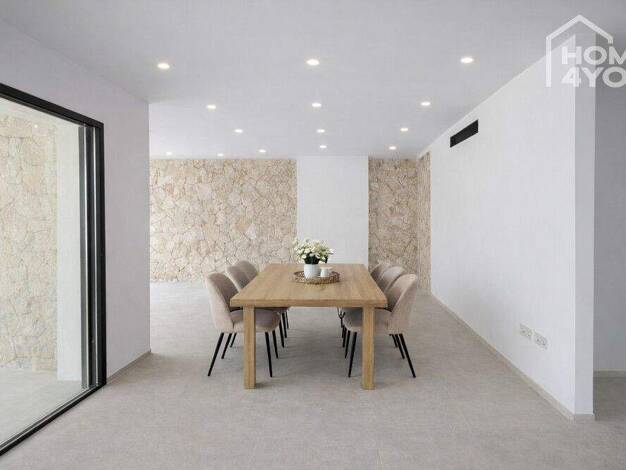 Dieses beeindruckende Stadthaus wird auf einem großzügigen Grundstück von etwa 428 m2 in der sehr begehrten Gegend von Santanyi errichtet, wo moderner Komfort auf luxuriöses Design trifft. Die Verwen...