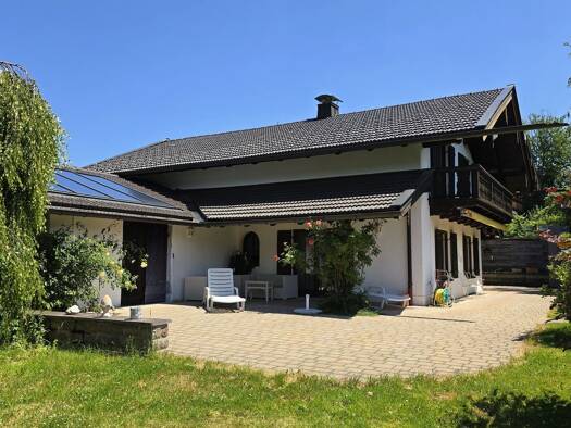 Dieses schöne traditionelle Landhaus wurde 1994 im Tegernseer Architekturstil erbaut und fügt sich sehr harmonisch in die ländliche Umgebung ein. Ein kleiner Bachlauf durchquert das ca. 1.747 m² groß...