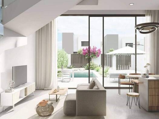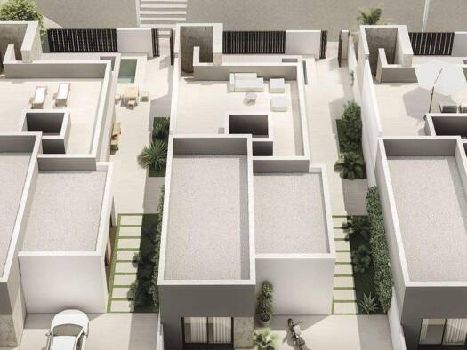 26 Neubauten Moderne Erdgeschossvillen mit Solarium und privatem Pool, 2 und 3 Schlafzimmer, 500 Meter von den Stränden entfernt.