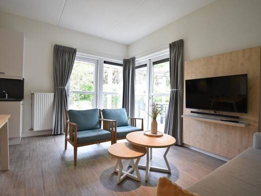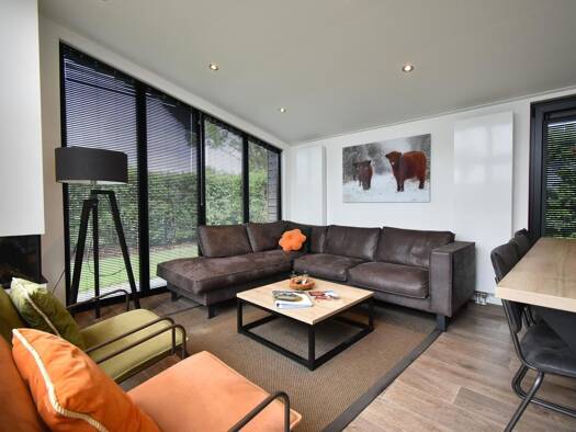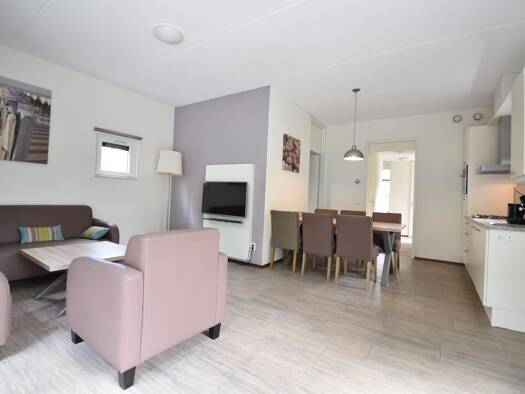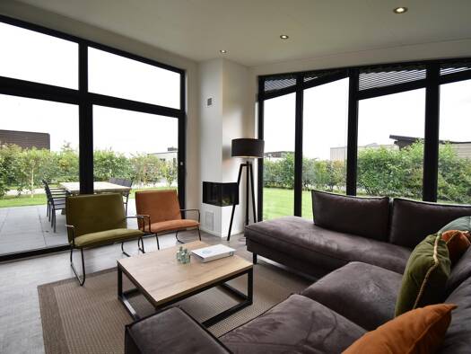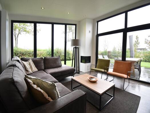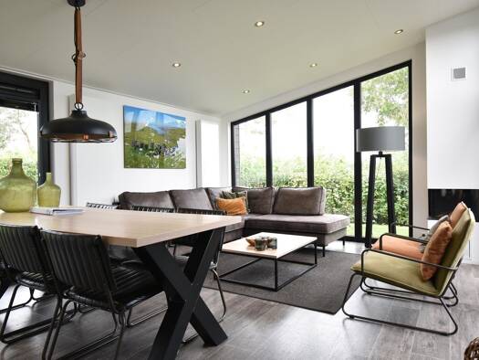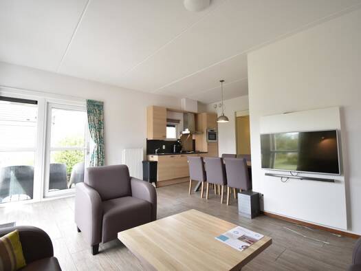 Schönes Haus für 6 Personen am Rande des Parks. Großes helles Wohnzimmer mit 2 großen Fenstern, mit Blick auf den Polder, von denen einer eine Schiebetür zur großen Terrasse führt. Darüber hinaus hat...