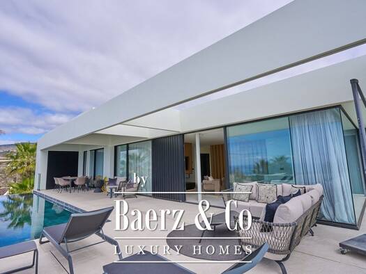 we are delighted to present this stunning luxury villa, ideally situated in an unexpected yet central location in the heart of tenerife's most sought-after tourist area. despite its prime setting, ju...
