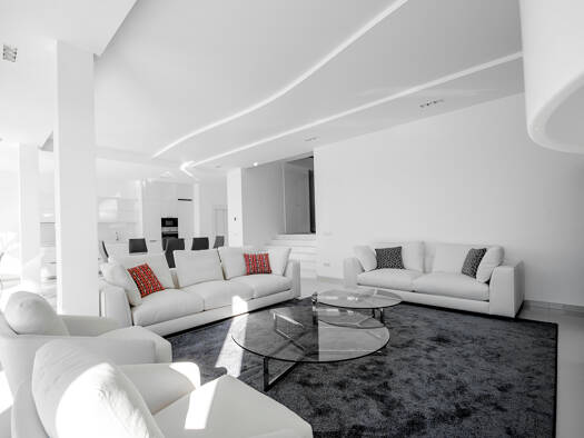 Lichtdurchflutete luxuriöse Villa - mit atemberaubenden Meerblick! Die verschiedenen Etagen des Hauses sind bereits möbliert und mit dem Aufzug oder mit der Treppe zu erreichen. In der mittleren Etag...