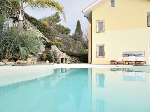 In wunderbarer Südlage schaut dieses elegante Landhaus-Anwesen auf die faszinierende Szenerie des ligurischen Hinterlandes und das am Horizont glitzernde Mittelmeer. Nur circa 1,5 km sind es auf eine...