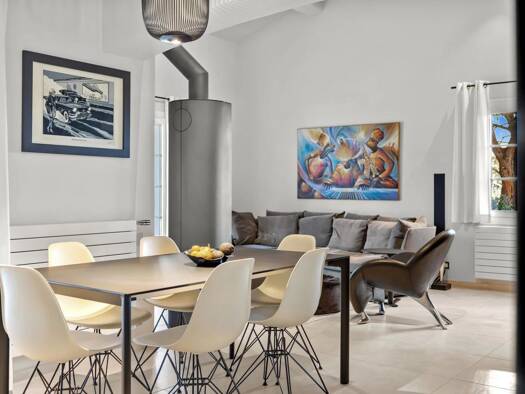 Inmitten einer grünen und geschützten Umgebung wurde diese Villa sorgfältig renoviert, was ihr heute eine sanfte und einladende Atmosphäre verleiht. Dank der großen Fensterfronten ist sie sehr hell u...