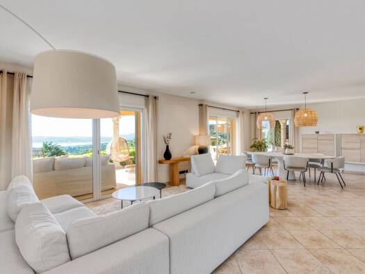 In Grimaud, a quiet, sought-after neighbourhood, we are pleased to offer you a beautiful 12-room villa of 464m2 with panoramic sea views and a glimpse of the old village of Saint-Tropez. Recently ren...