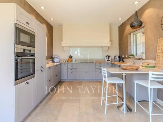 In einer prestigeträchtigen Domaine, in absoluter Ruhe, wunderschöne, zeitgenössische Villa mit Meer- und Dorfblick, gelegen auf einem ca. 4.000 m² großen, bepflanzten Grundstück mit beheiztem Überla...