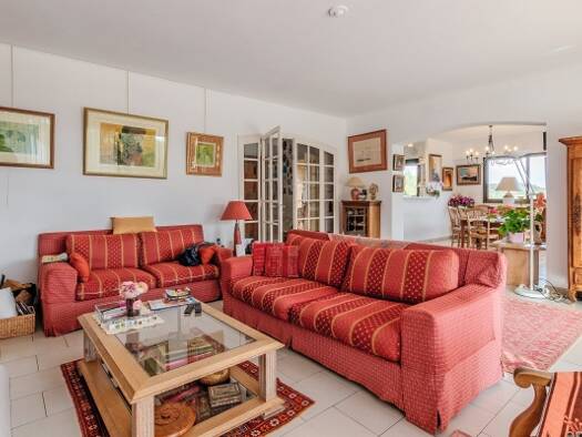 Villa of real charm on the hills of Antibes enjoying clear views as far as the sea and facing due south. Bright living-room with open-plan kitchen leading out to the terrace and garden with its olive...