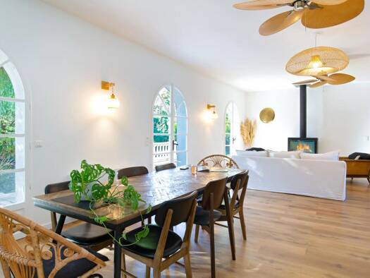 Valescure: lovely family villa, completely renovated in 2024, close to the shops, in a peaceful, green setting with nice, unobstructed views. With a total floor area of around 190 m2, the living room...