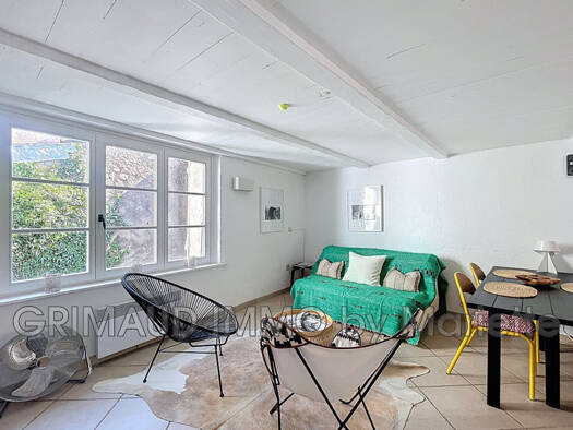 Panoramablick für diese Wohnung im Herzen des Dorfes Grimaud Sie besteht aus einem Eingangsbereich, der zum Duschbad führt, sowie einem sehr hellen Wohnzimmer mit Blick auf einen Patio und ein separa...