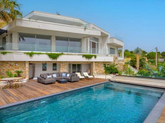 Located in a secure estate, this prestigious villa, recently renovated in 2023, offers an exceptional living environment on the picturesque Blue Coast. Enjoying a panoramic view of the Mediterranean ...