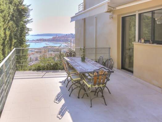 Superb contemporary and bright south-facing villa with stunning views of the Mediterranean Sea and the old town of Menton. Built in year 2000 in a calm location in the sought-after Garavan area in Me...