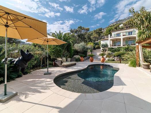 This spacious 365m2 villa, set on a 2,630m2 landscaped plot planted with Mediterranean trees and shrubs, enjoys a peaceful setting, overlooking the village of Eze. The south-facing property offers sp...