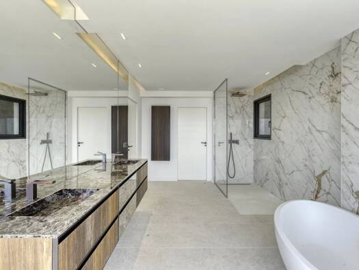 A remarkable property built in 1990 by Tropézien architect Georges Grateau and designed by the famous Parisian decorator Jean-Paul Faye, boasting marvellous views of the sea and Cap Negre. It compris...